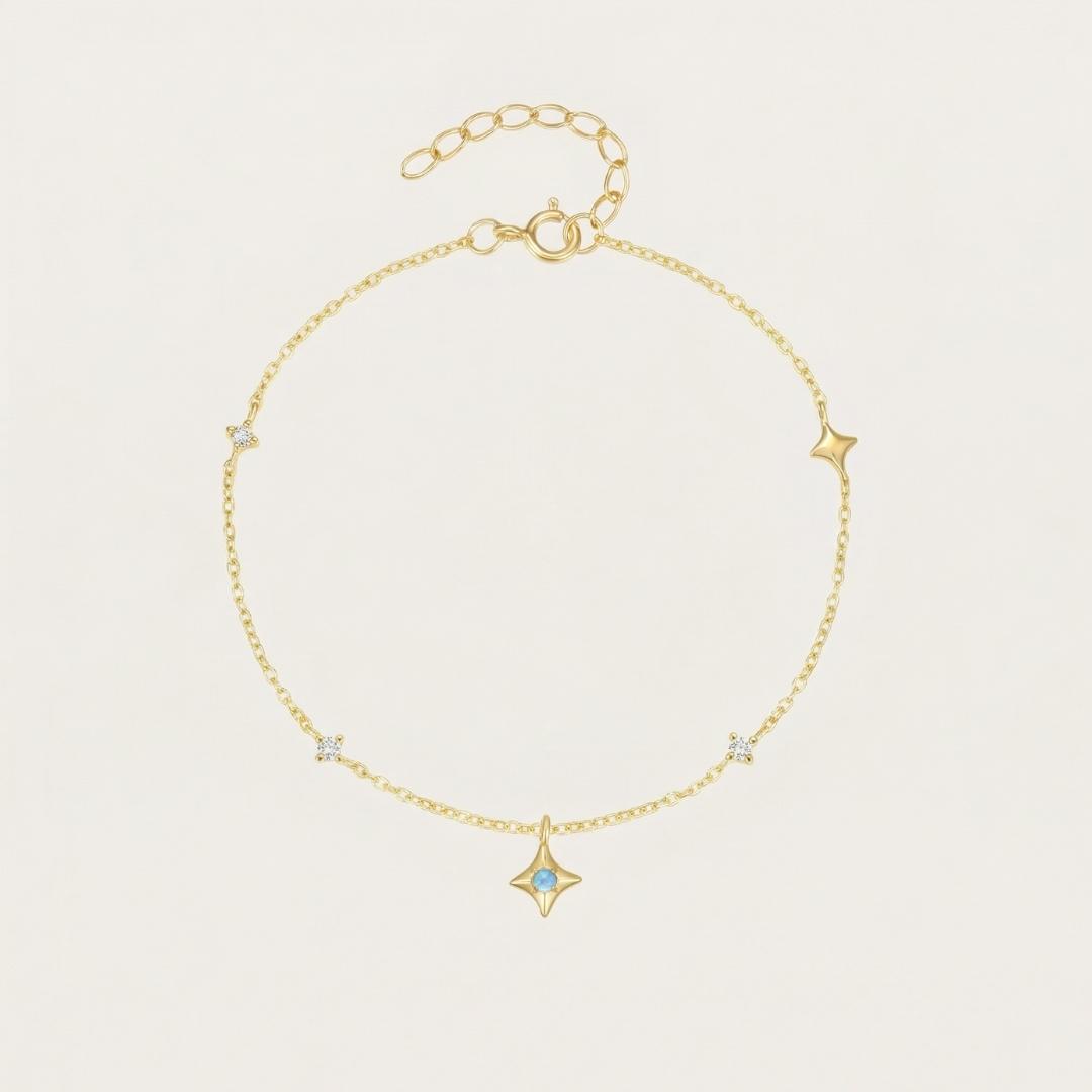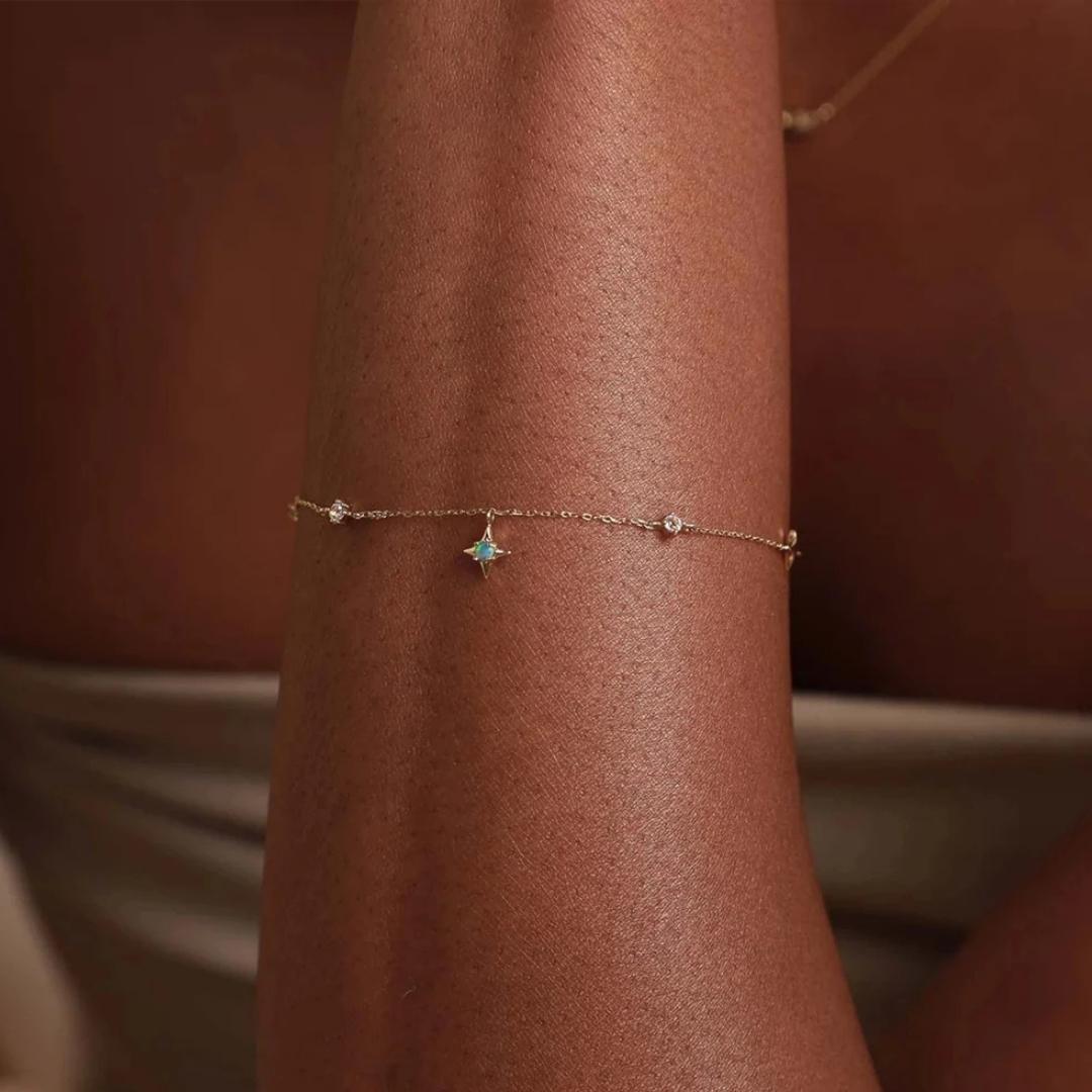 Sottile come un riflesso sull’acqua al tramonto, Aelyra è un bracciale delicato che illumina il polso con piccoli punti di luce. Lo zircone centrale cattura lo sguardo come una stella sul mare, mentre la catena leggera accompagna ogni movimento con eleganza discreta.