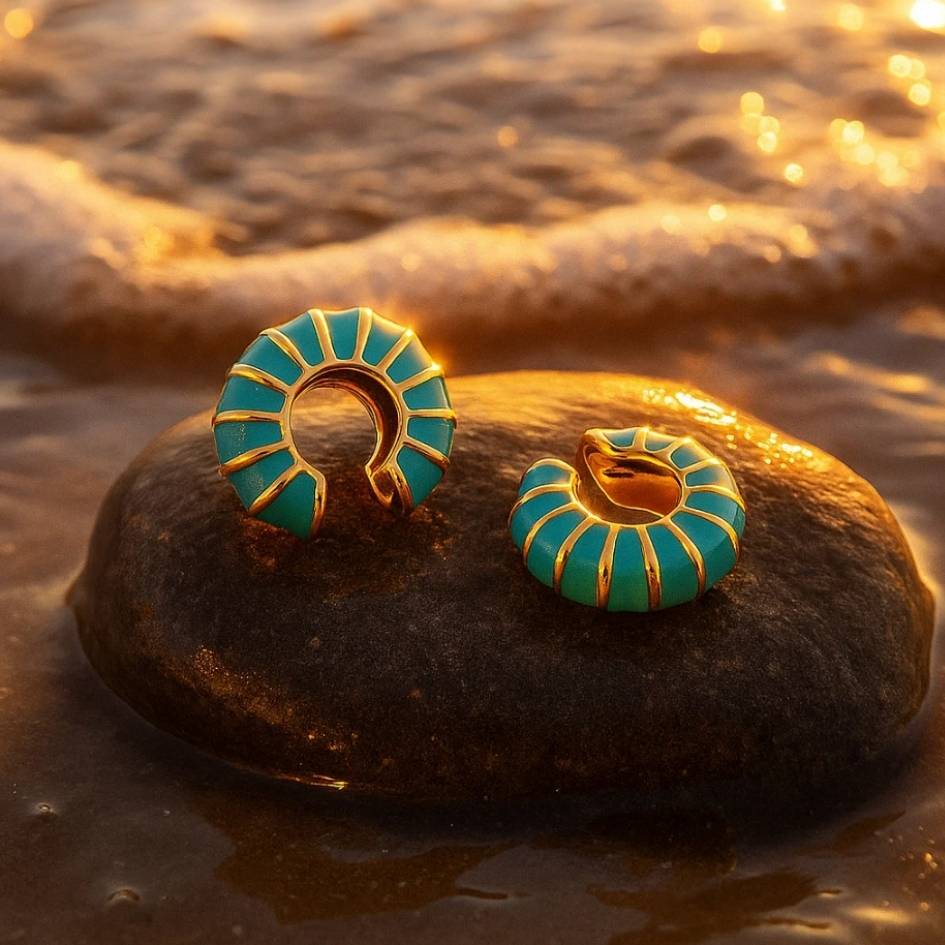 Con la loro forma a spirale, questi orecchini catturano l’essenza dei gusci marini levigati dalle onde e dal tempo.