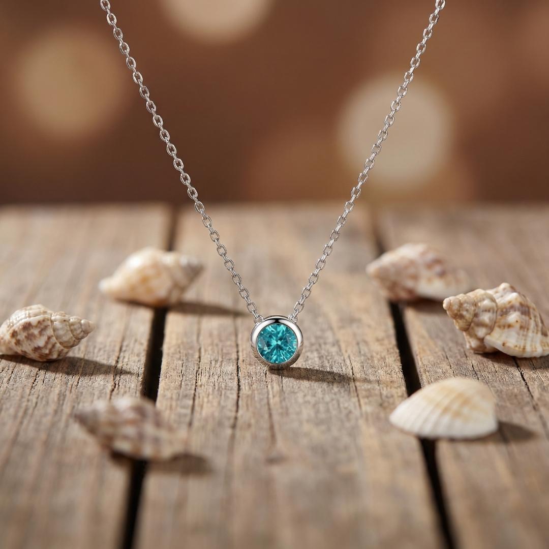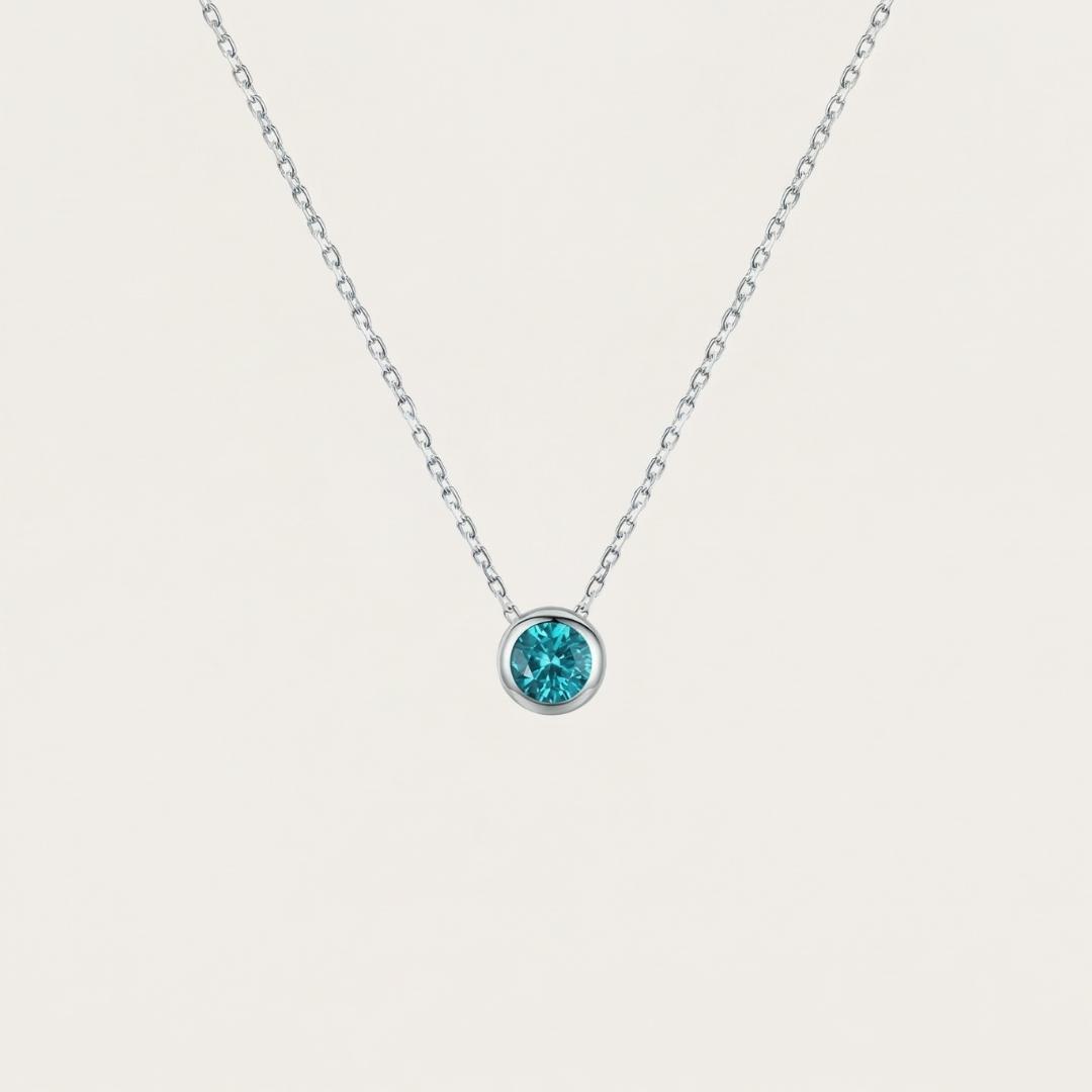Caelira cattura la luce come una piccola goccia d’oceano sospesa nell’aria. La pietra azzurra riflette tonalità profonde e luminose, ricordando l’acqua cristallina delle baie più silenziose.