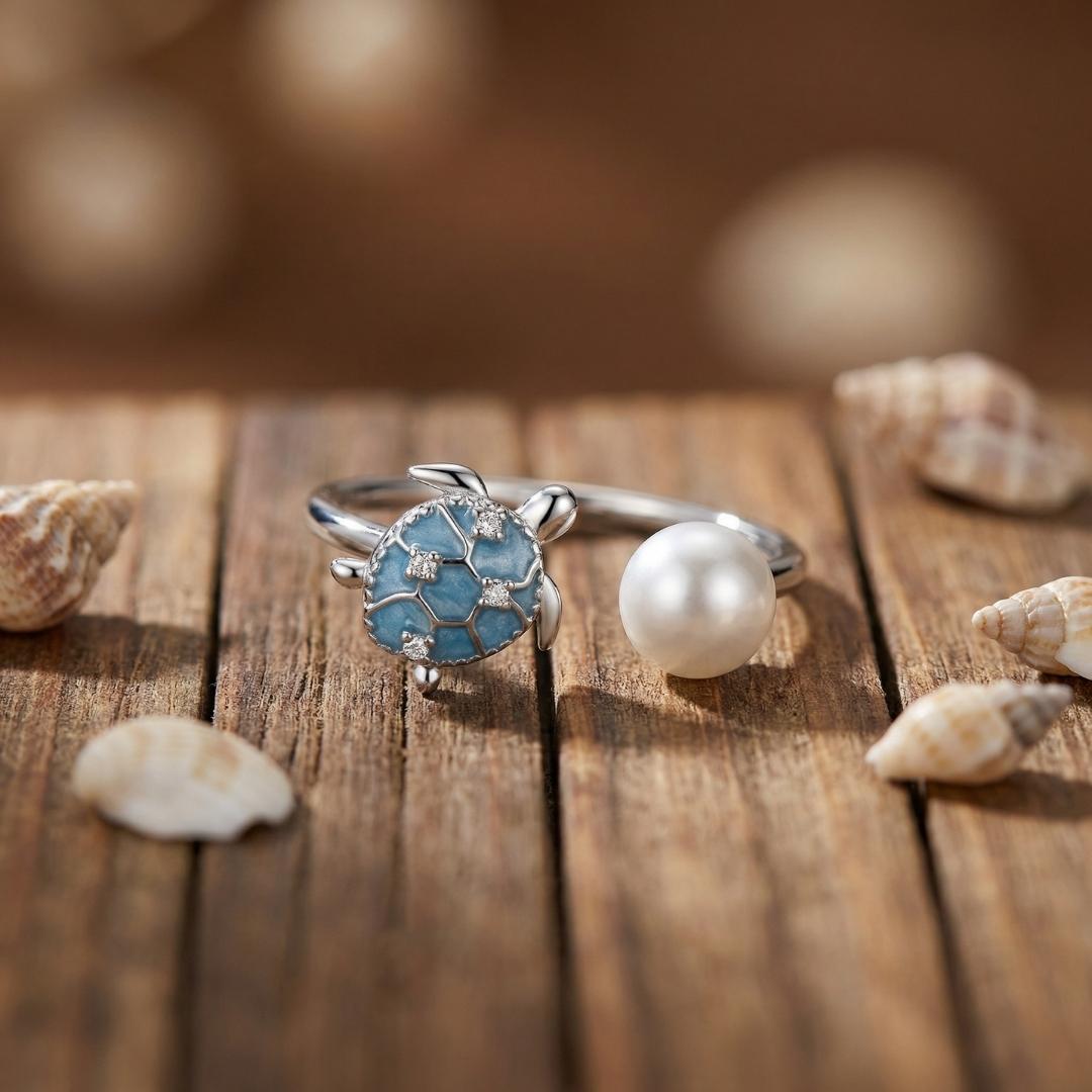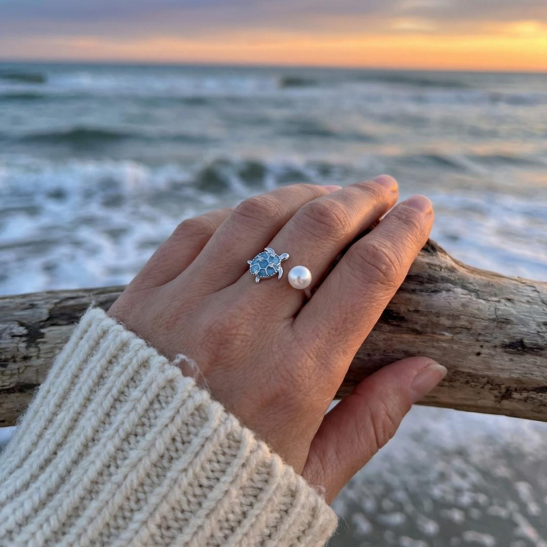 Simbolo di saggezza, longevità e ritorno a casa, la tartaruga rappresenta il legame eterno con l’oceano. La perla, pura e delicata, ricorda i tesori nascosti custoditi dal mare.