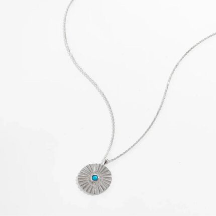 Ciondolo principale con motivo a conchiglia e cristalli color turchese come dettagli luminosi.