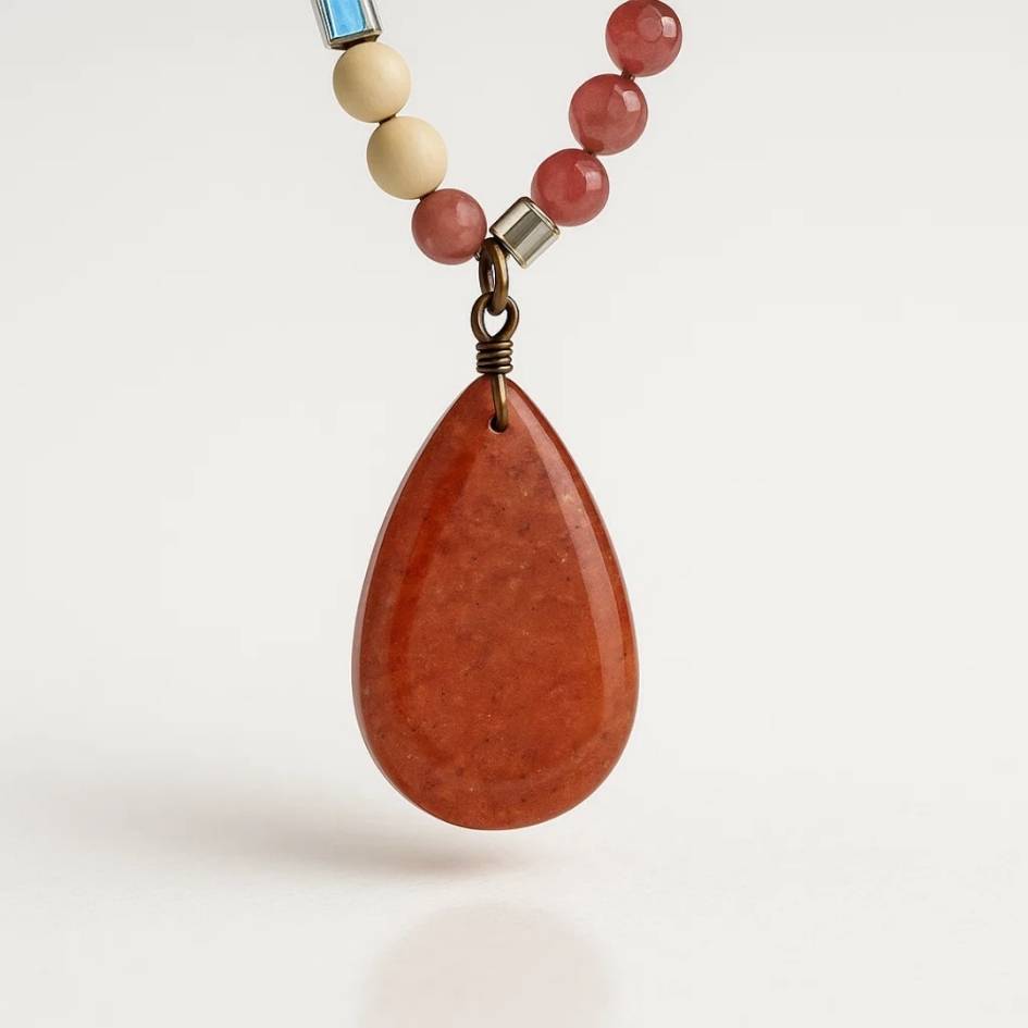 La pietra naturale, con le sue venature uniche, richiama la forza della terra e la quiete del mare al tramonto, trasformando questa collana in un simbolo di armonia ed eleganza boho senza tempo.