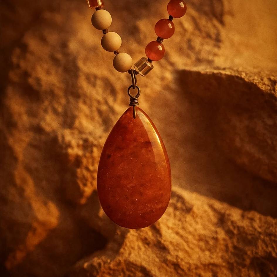 Un pendente a goccia che custodisce i colori caldi del sole al calare del giorno.