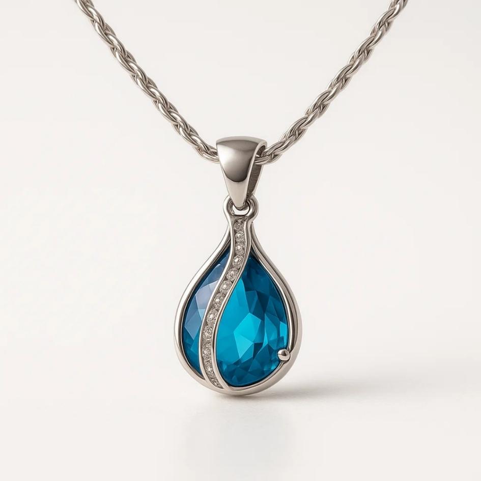 Goccia di Luce – Collana con zircone blu e finitura argentata