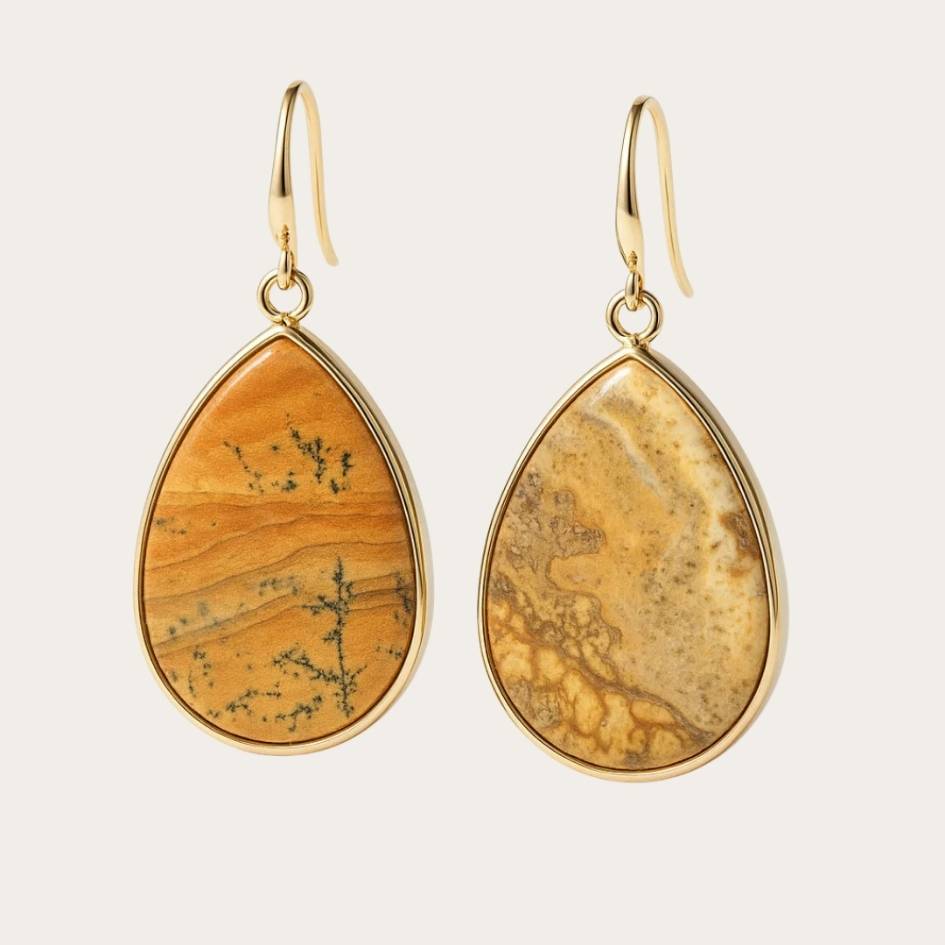 Orecchini che racchiudono i colori dell’alba e dell’autunno, con sfumature uniche che ricordano paesaggi incisi nella pietra.