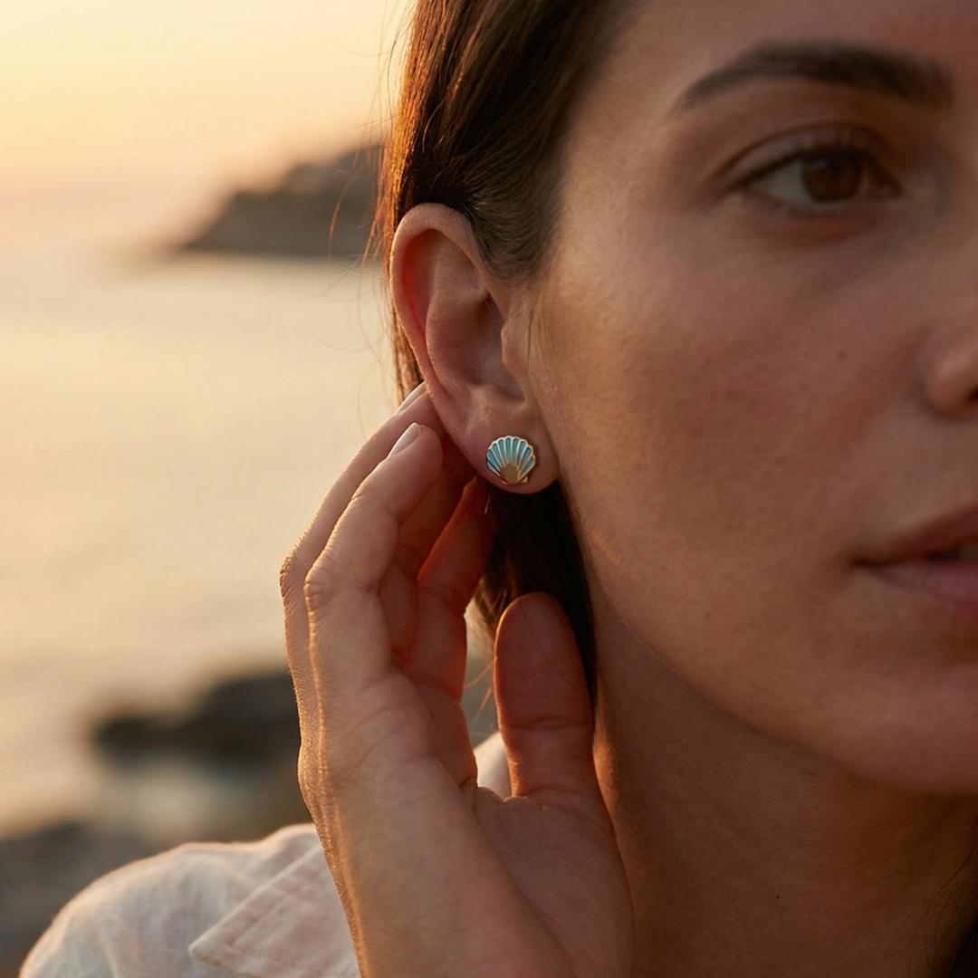 Il turchese richiama acque lontane e luminose, mentre le linee dorate evocano il sole che si riflette sulla sabbia chiara. Un piccolo talismano da indossare come ricordo dโestate eterna.