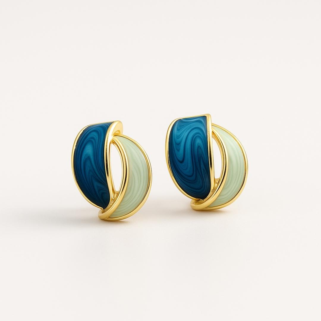 Misurano 2 x 2 cm, un formato compatto ma d’impatto, ideale da indossare ogni giorno o per impreziosire look più ricercati. La fusione di linee morbide e colori marittimi li rende un accessorio raffinato e senza tempo.