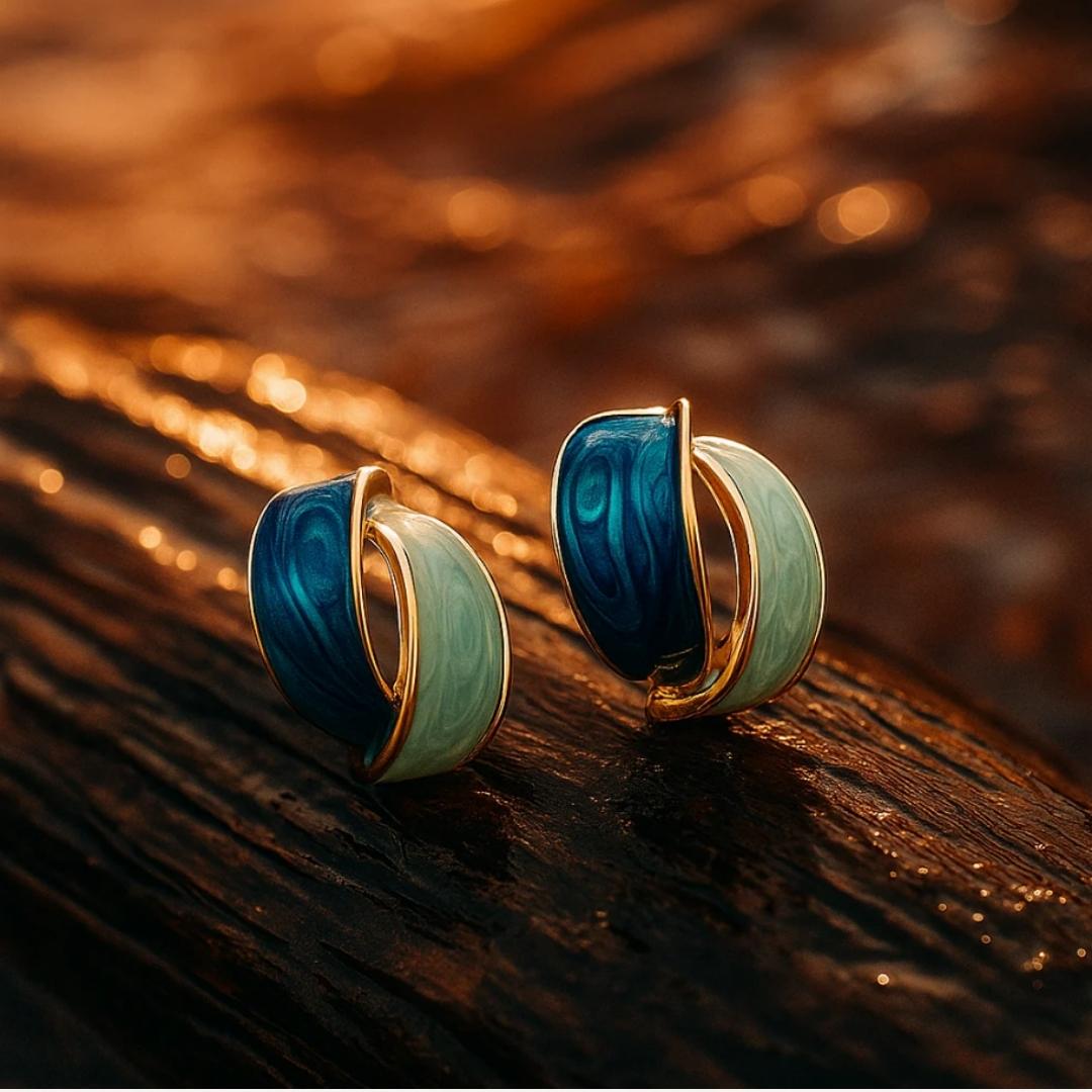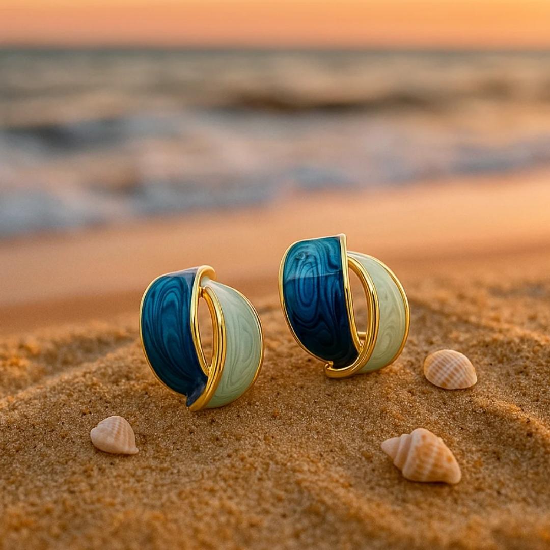 Come due onde che si rincorrono al tramonto, questi orecchini racchiudono la poesia del mare che accarezza la riva.
