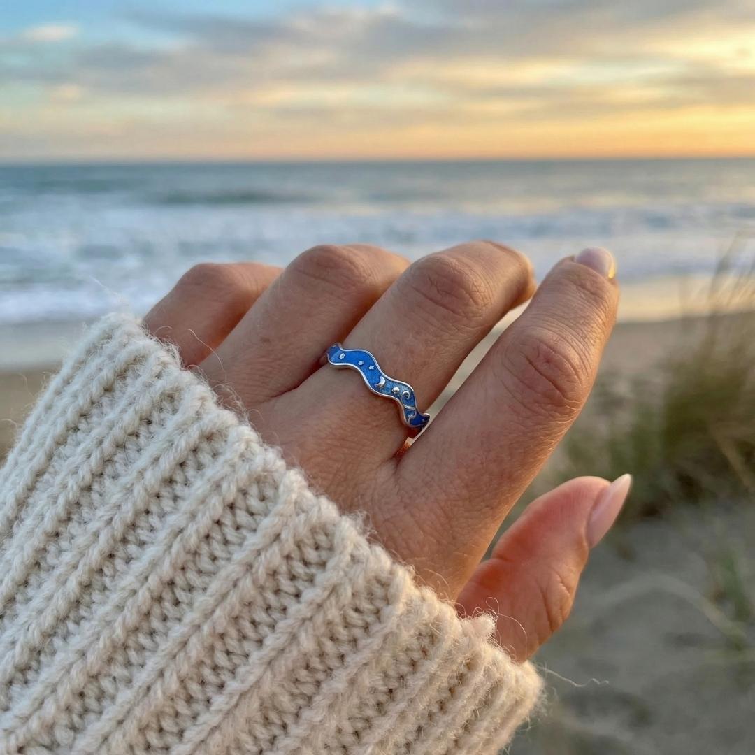 Ispirato alle notti d’estate in riva al mare, quando il cielo si specchia nell’oceano e tutto sembra sospeso tra sogno e realtà. Un anello simbolico, poetico, diverso da ogni altro.