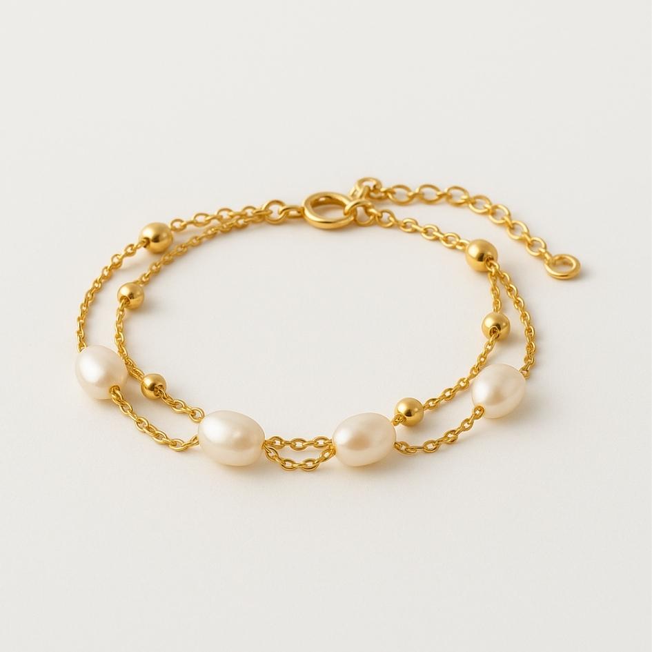 Rimah | Bracciale Dorato con Perle