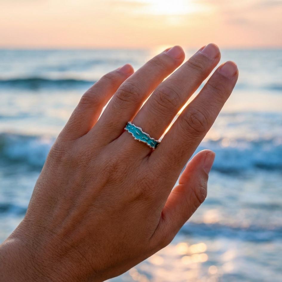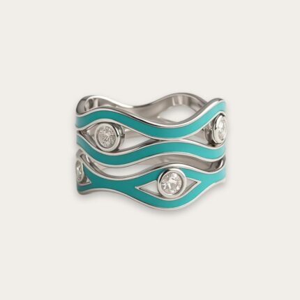 La smaltatura turchese, applicata interamente a mano, richiede 6–8 ore di lavorazione: un processo paziente in cui il colore prende profondità, luce e movimento.