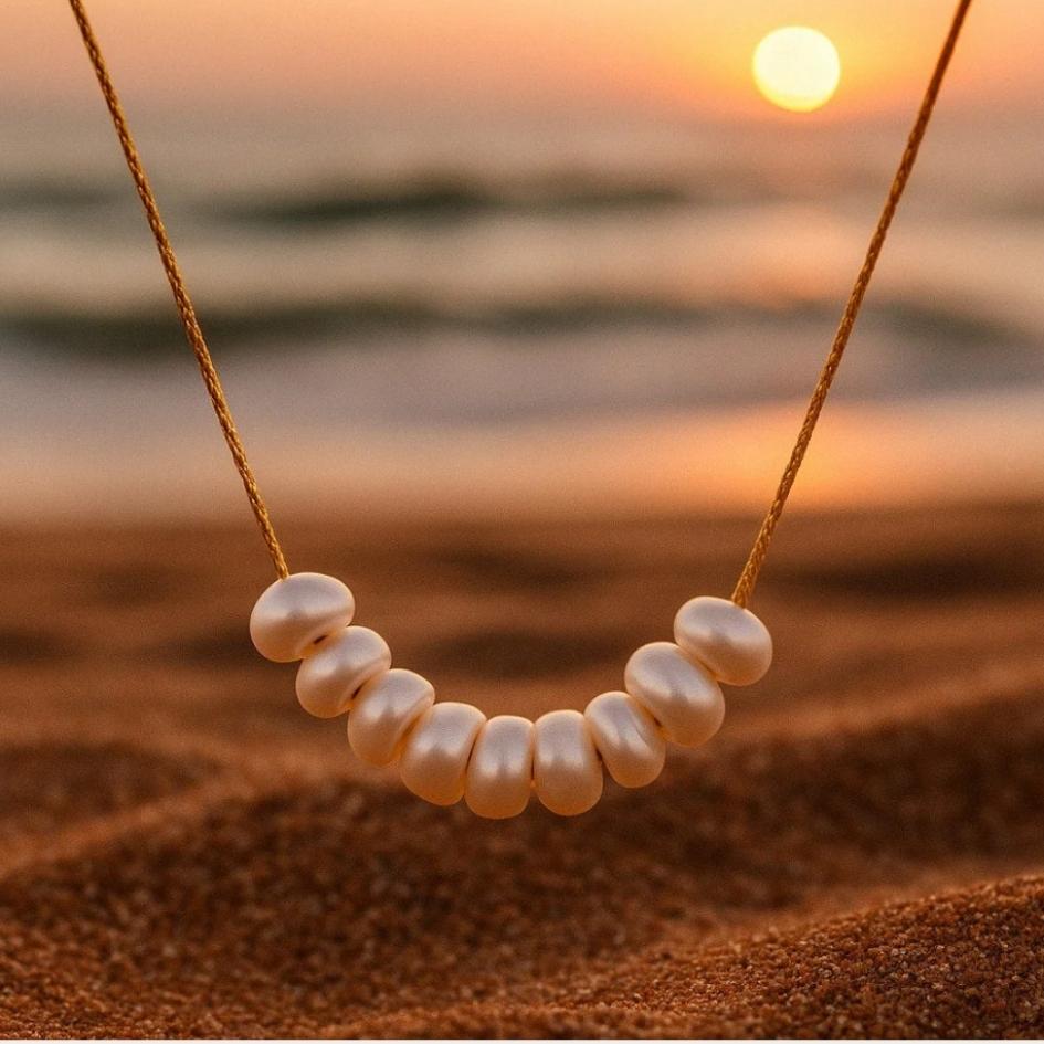Ogni collana Salima รจ completamente fatta a mano, con perle selezionate per il loro fascino naturale e irregolare. Il filo dorato รจ intrecciato con cura per esaltarne la bellezza organica, conferendo al design una sensazione leggera e fluida.