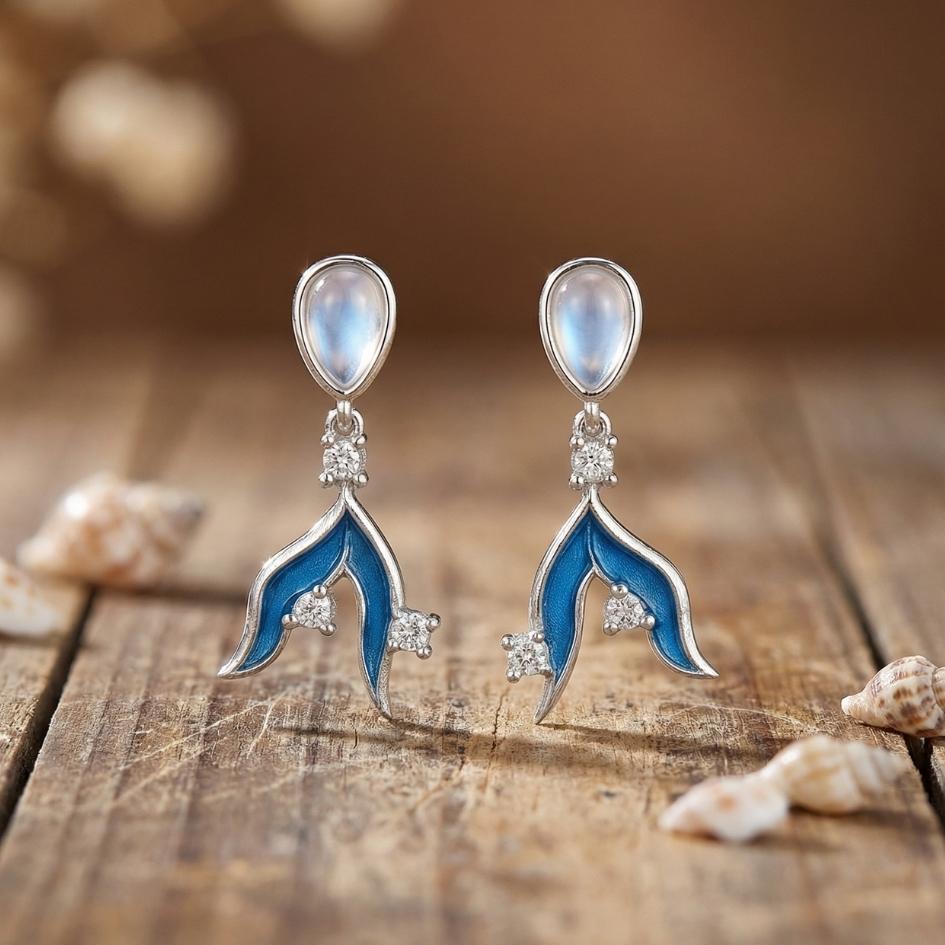 Selarya danza leggera accanto al viso come una piccola coda di sirena illuminata dalla luna. Il blu intenso si intreccia alla pietra chiara, creando riflessi che ricordano le onde nelle sere dโestate.