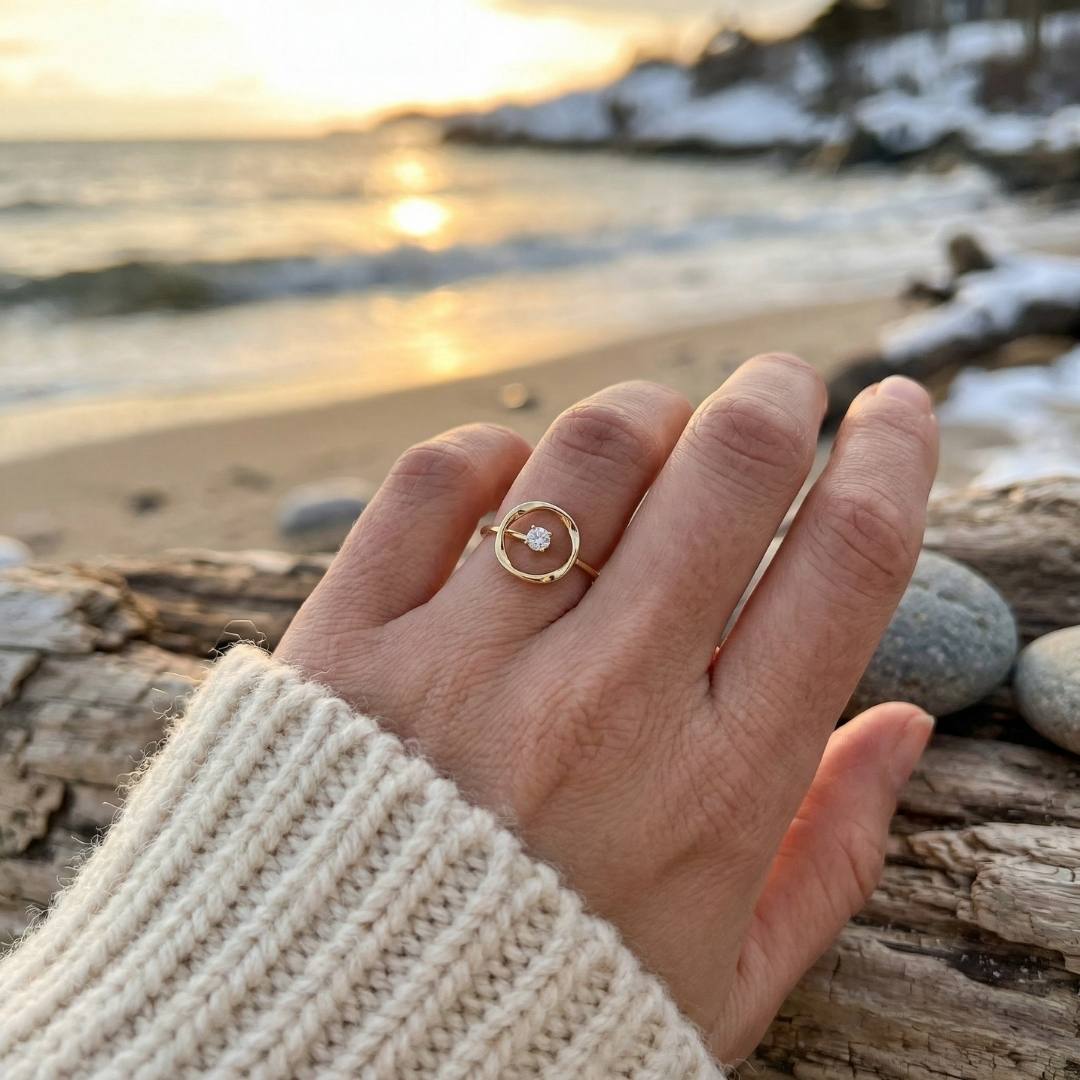 Come una piccola stella racchiusa in un cerchio dorato. Solendra cattura la luce con semplicità ed eleganza, creando un dettaglio luminoso e minimal pensato per brillare con discrezione ogni giorno.