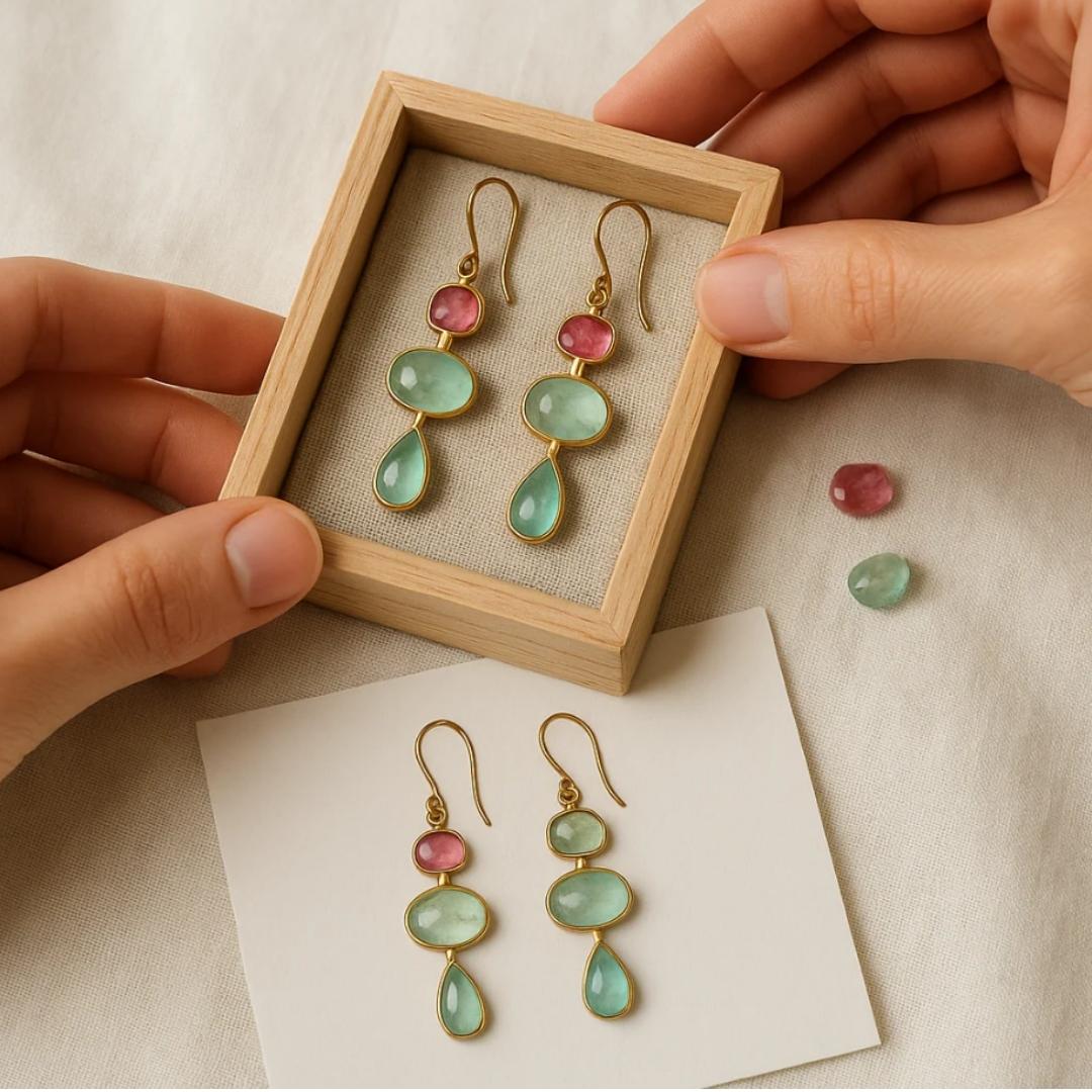 Conserva i gioielli ben asciutti, separati tra loro, in bustine/pouches chiuse, lontano da umidità e luce diretta; piccole bustine di silica gel o strisce anti-tarnish aiutano a rallentare l’ossidazione. Ricorda: i pezzi placcati in argento 925 richiedono più delicatezza; rame e ottone possono scurirsi nel tempo (è normale e innocuo); l’acciaio inox è più resistente, ma meglio risciacquare e asciugare dopo contatto con acqua o sudore. Con queste attenzioni, la brillantezza durerà molto di più.